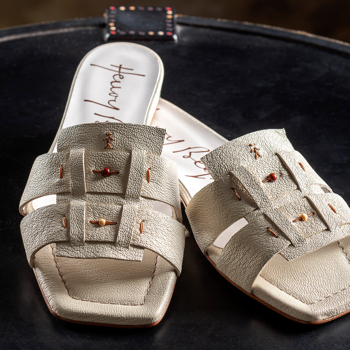 Stitching is at the heart of Henry Beguelin’s identity. From strong saddle stitches to decorative beading with Venetian murrine, every detail is carefully crafted. These hand-applied embellishments make each piece one of a kind, blending heritage with artistic expression.